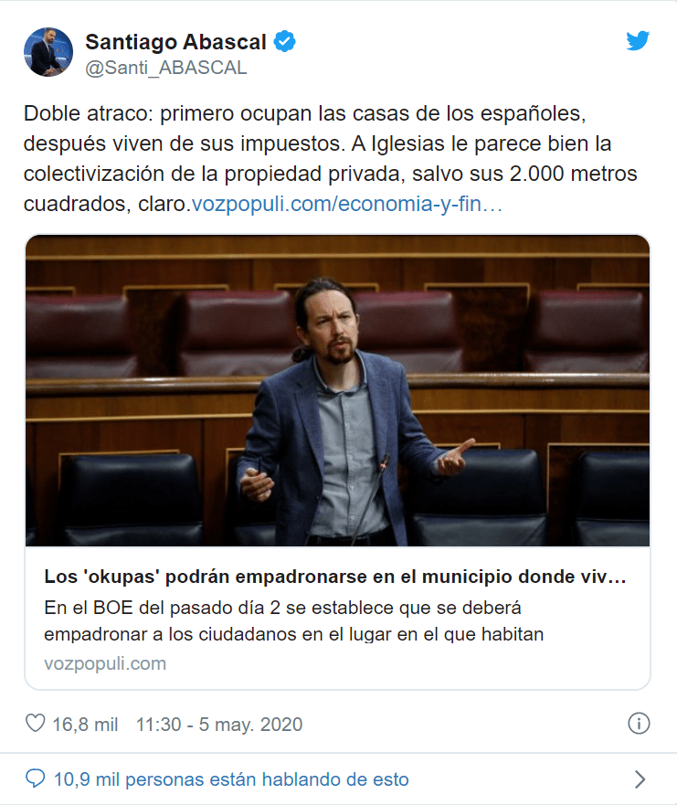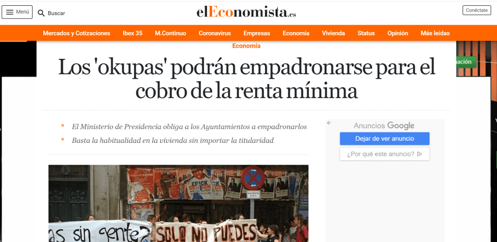Hace un par de días se extendían la noticia en varios medios y por distintas redes sociales de la que todo el mundo hablaba: el Gobierno central permitiría desde ahora empadronarse en la vivienda ilegal a todos los ocupas para así recibir esta rente mínima anunciada en el inicio del coronavirus. Se publicaba que esta resolución había sido promovida por la Vicepresidencia ocupada por Pablo Iglesias. Sin embargo, esta información es completamente FALSA ya que la esto se remonta al año 2015 cuando se decidió como obligación del ayuntamiento incluir en el padrón municipal a todas las personas (también las sin hogar) para que todo el mundo tuviese acceso a las ayudas de las Administraciones Públicas.